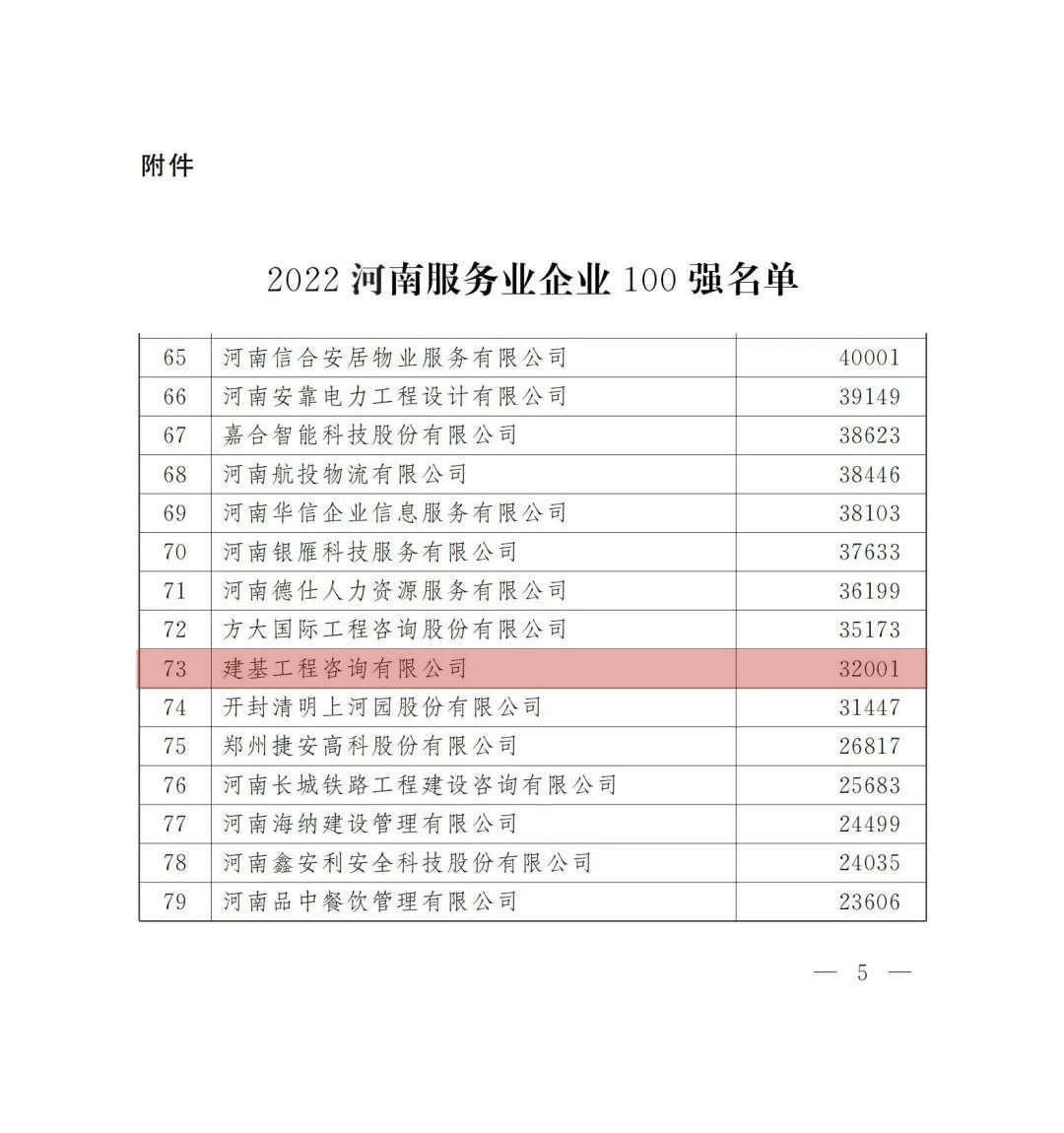 12月19日,河南省企業聯合會、河南省企業家協會通過官方網站發布2022河南企業100強、2022河南制造業企業100強、2022河南服務業企業100強榜單。建基工程咨詢有限公司“在2022年河南服務業企業100強”榜單位居73名。