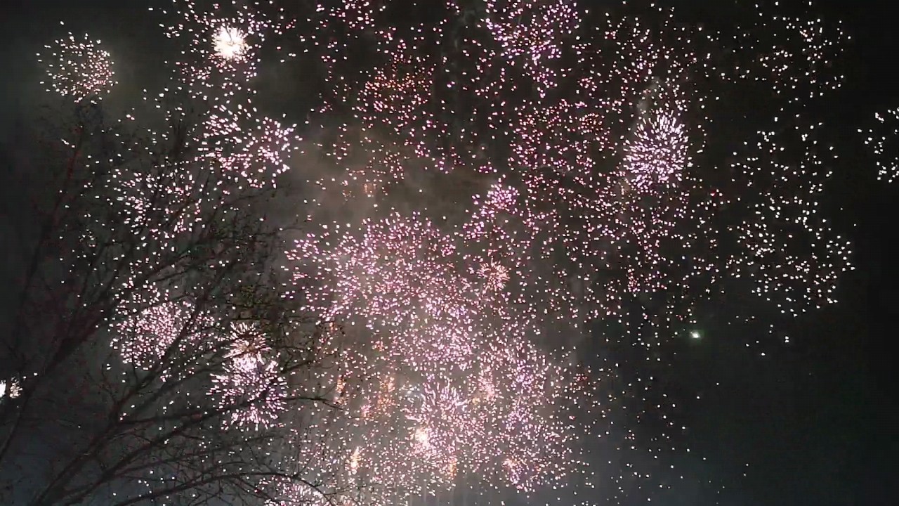 大家早早佇立在廣場(chǎng)上目不轉(zhuǎn)睛觀看煙花表演,并紛紛拿出手機(jī)瘋狂地拍照留影。
