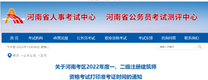 關于河南考區2022年度一、二級注冊建筑師資格考試打印準考證時間的通知