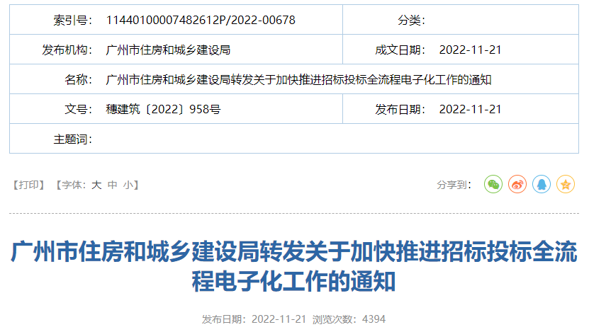 昨天,廣州市住建局轉發關于加快推進招標投標全流程電子化工作的通知,明確: