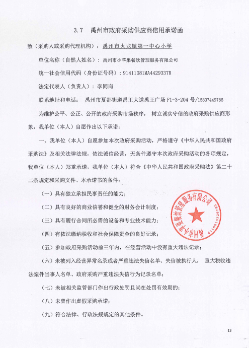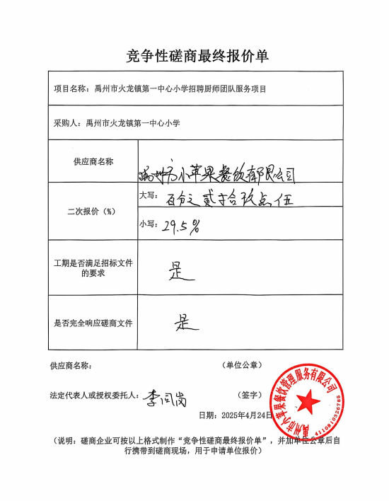 禹州市火龍鎮第一中心小學招聘廚師團隊服務項目附件