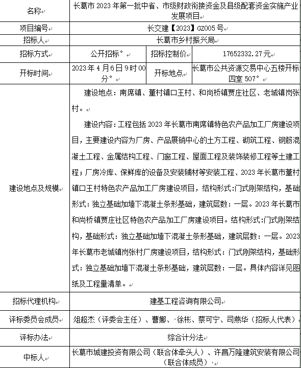 長葛市2023年第一批中省、市級財政銜接資金及縣級配套資金實施項目(不見面開標)中標公告